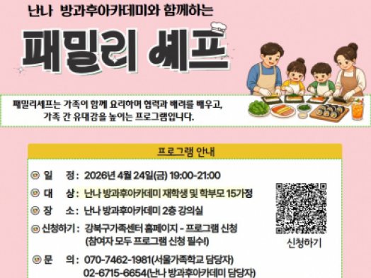 - 강북구[강북구] 패밀리셰프 신청접수중