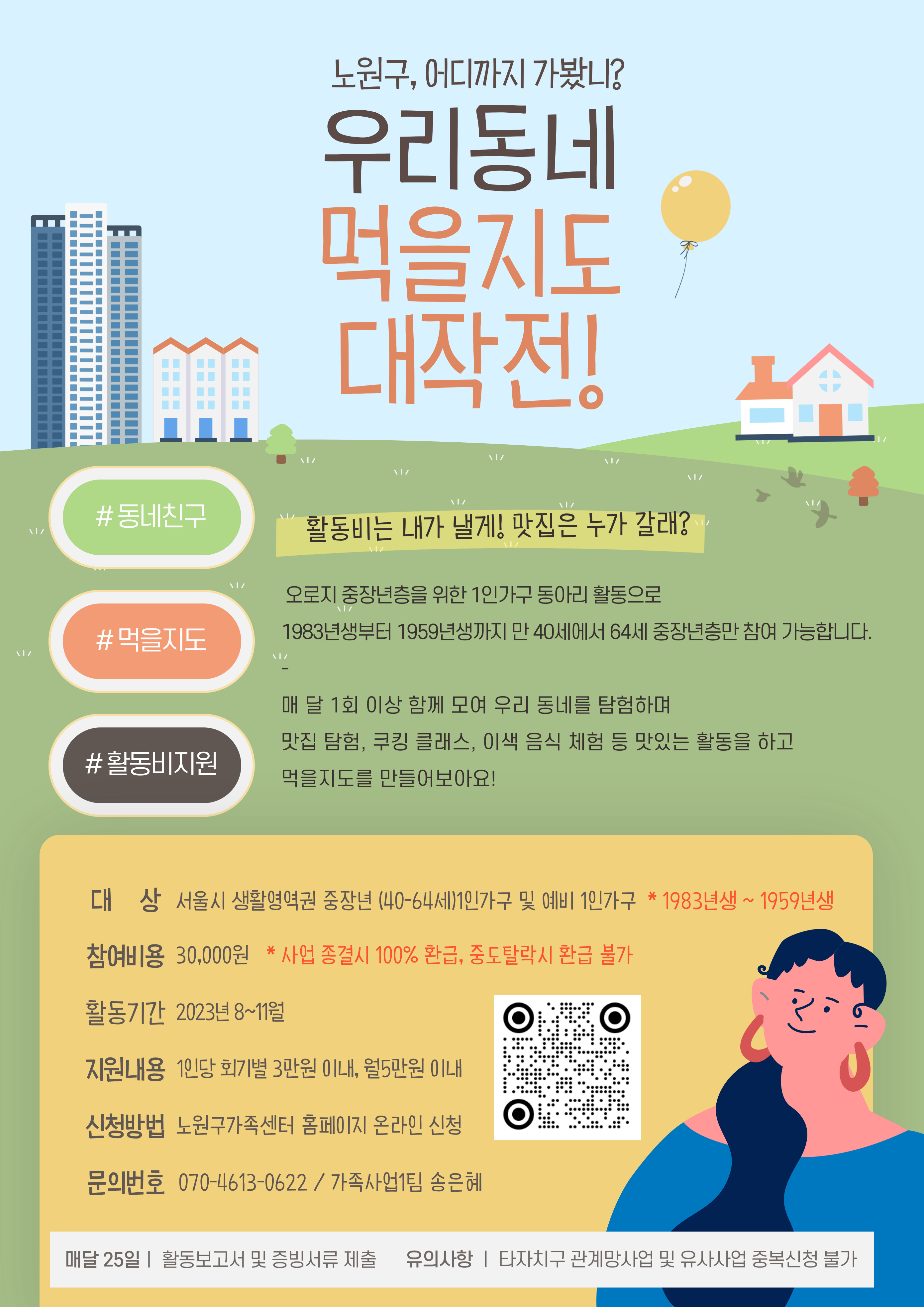 내가 살면서도 잘 모르는 우리 동네의 먹을지도를 함께 그려볼까요? 활동비는 노원구가 지원해드릴게요!