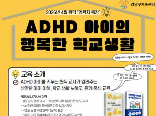 - 강남구[강남구]4월-ADHD 아이의 행복한 학교생활 부모교육(온라인ZOOM)