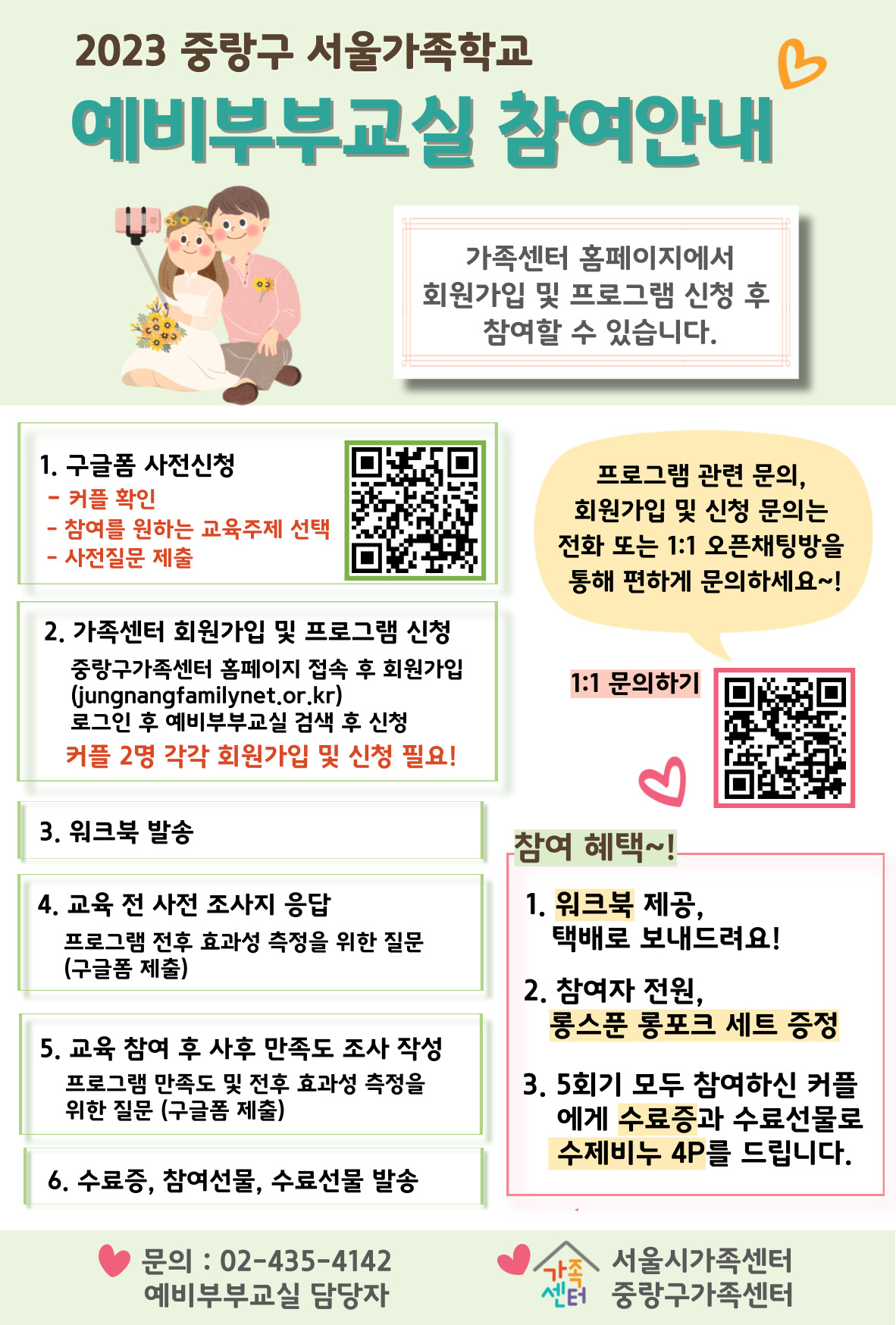 중랑구 가족센터 예비부부교실 담당자입니다.