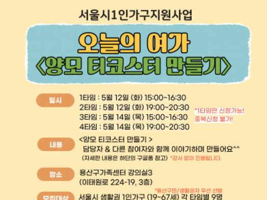 - 용산구[용산구]서울시1인가구지원사업 집단상담 프로그램 <나를 만나는 시간>