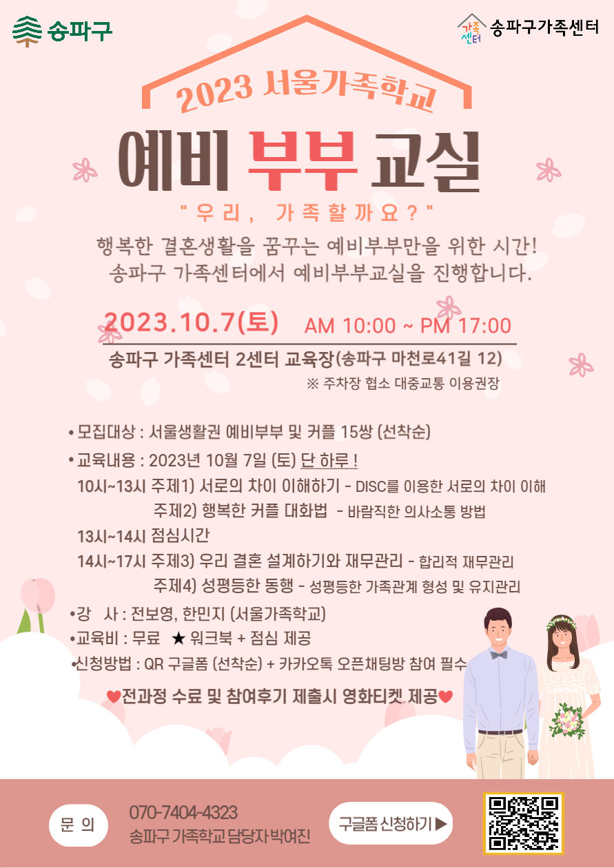 [송파구가족센터]예비부부교실 2차 선착순 참여자 모집중