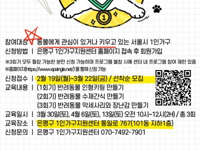 [은평구]서울시1인가구 생활밀착형 프로그램! 반려동물 교육