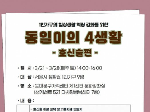 - 동대문구[동대문구] 슬기로운 1인생활 참여자 모집