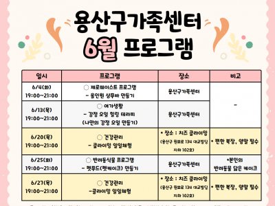이번 6월에 진행하는 프로그램 일정 확인하시고 많은 참여 부탁드립니다~:)
