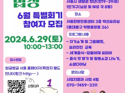 청년 1인가구를 위한 '건강한밥상' 6월 특별회기가 진행됩니다~~!