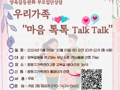 양육갈등완화 부모집단상담 '우리가족 마음톡톡Talk Talk'