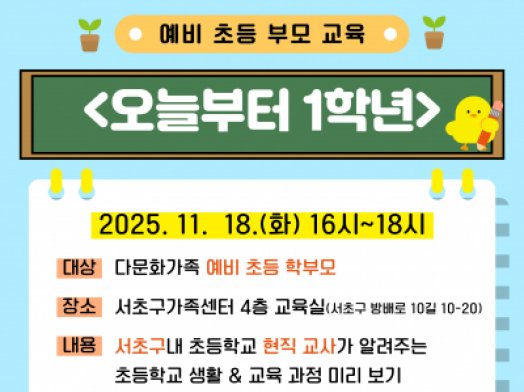 [서초구] 예비 학부모 교육 '오늘부터 1학년'