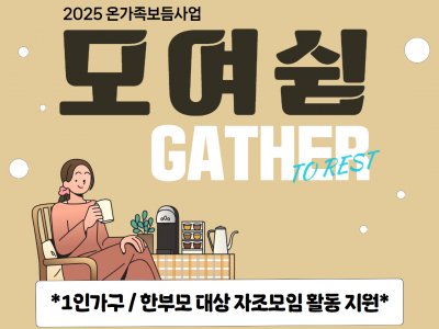 1인가구와 한부모가족 대상의 자조모임 "모여쉼" 의 참여자를 모집합니다.