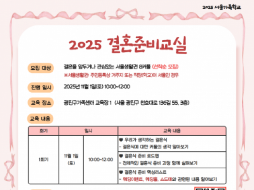 - 광진구[광진구] 2025 결혼준비교실 참여자 모집