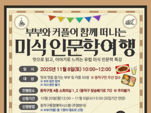 - 동작구[동작구]부부와 커플이 함께 떠나는 미식인문학 여행