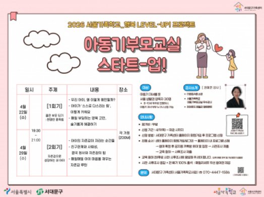 - 서대문구[서대문구] 2026 아동기부모교실 4월 신청접수중