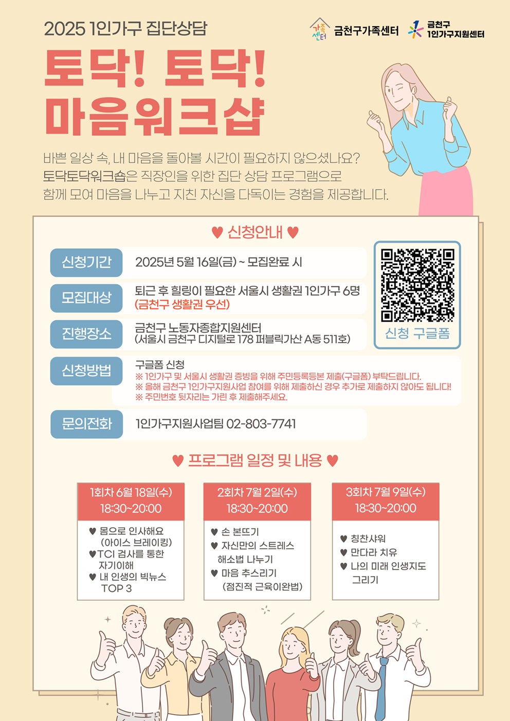 [금천구] 1인가구 집단상담 <토닥토닥 마음워크샵>