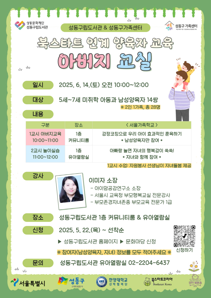 ![[성동구] 2025 아버지교실 "감정코칭으로 우리 아이 효과적인 훈육하기" [성동구] 2025 아버지교실 "감정코칭으로 우리 아이 효과적인 훈육하기"](https://familyseoul.or.kr/sites/default/files/wysiwyg/%5B%ED%81%AC%EA%B8%B0%EB%B3%80%ED%99%98%5D2025_0614_%EC%95%84%EB%B2%84%EC%A7%80%EA%B5%90%EC%8B%A4_%EC%95%88%EB%82%B4%EC%A7%80_%EC%B5%9C%EC%A2%85.jpg)