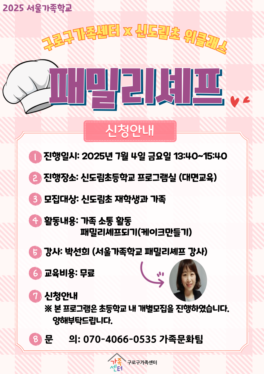 7월 4일 금요일, 구로구가족센터와 신도림초등학교 위클래스가 연계하여 패밀리셰프를 진행합니다!