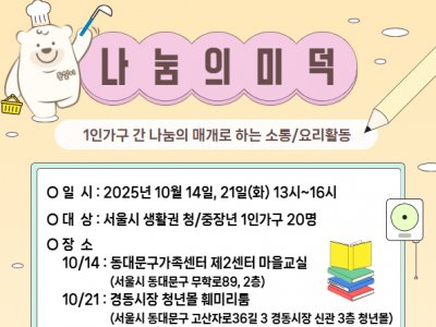 - 서울시 생활권 청중장년 1인가구 20명 동대문구가족센터 제2센터 마을교실