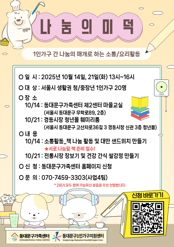 [동대문구가족센터] 10월 '나눔의 미덕' 참여자 모집