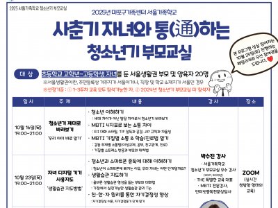 [마포구]사춘기 자녀와 통하는 청소년기 부모교실 참여자 모집