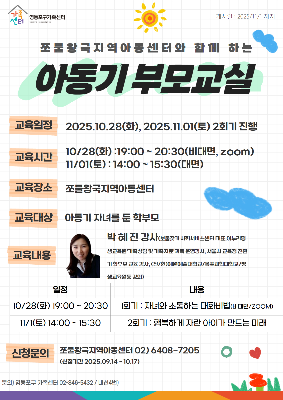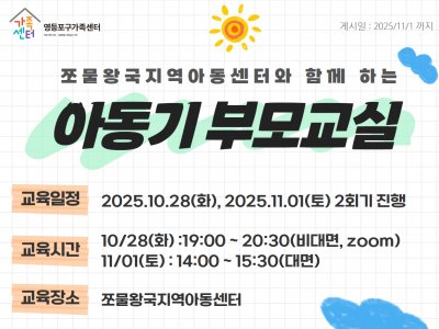- 영등포구[영등포구] 아동기 부모교실 신청접수 중