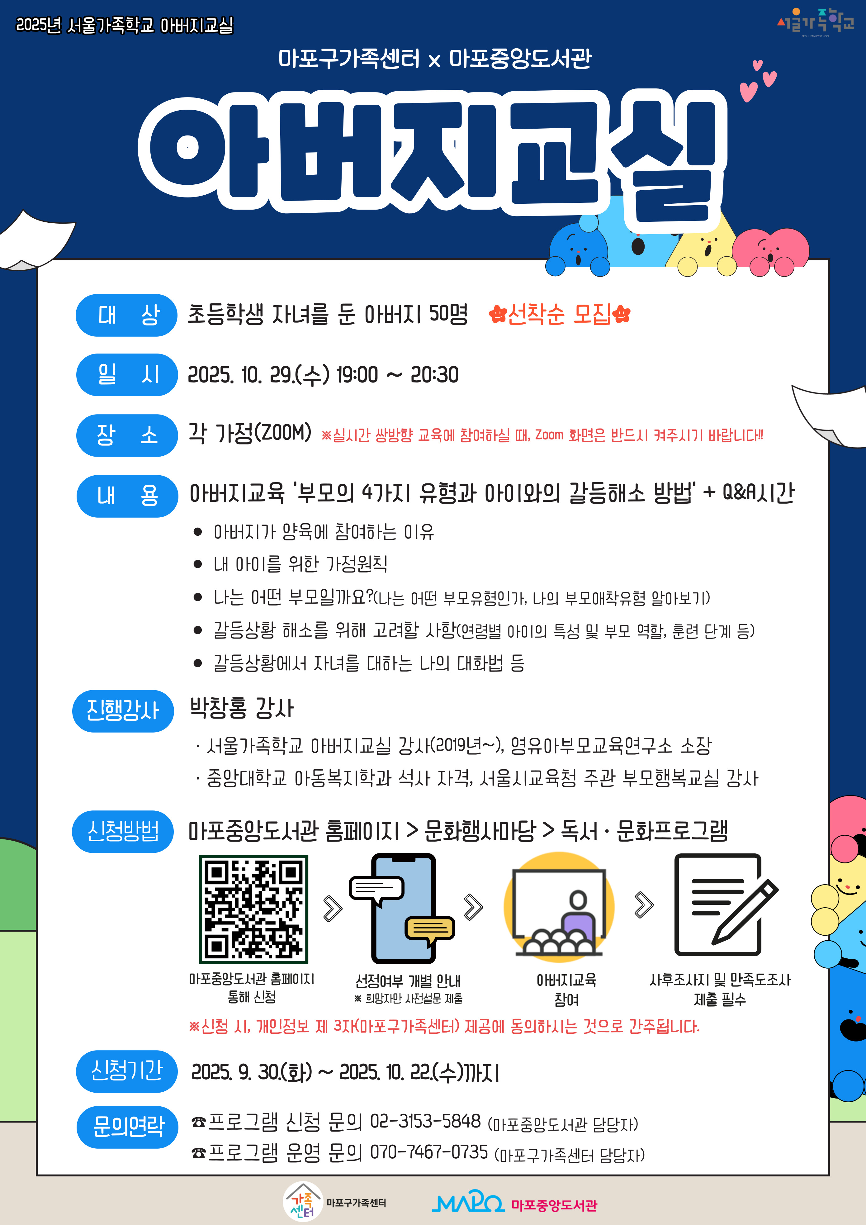- 마포구[마포구]마포중앙도서관x마포구가족센터가 함께하는 아버지교실 모집(선착순)