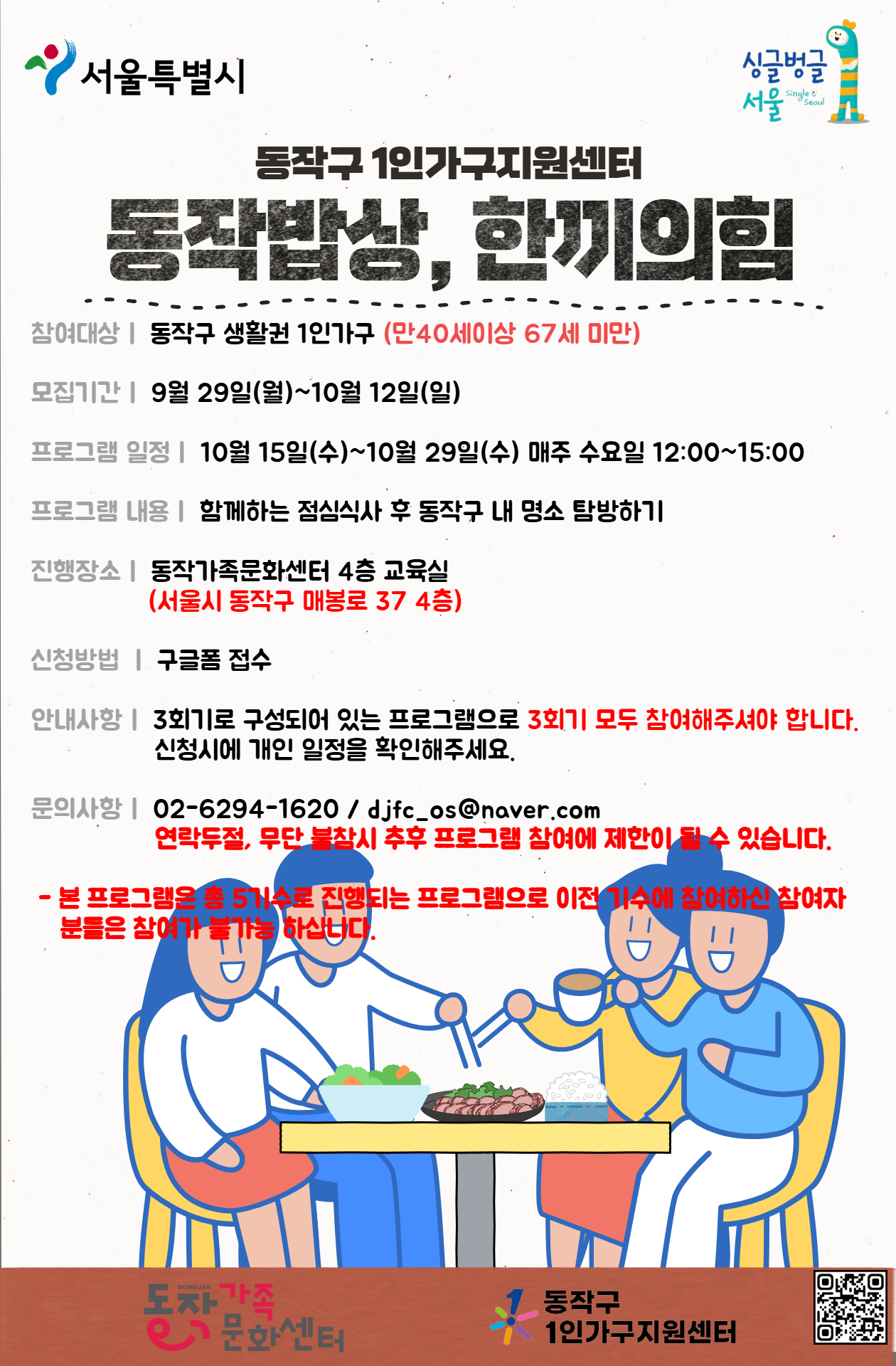 [동작구] 2025년 1인가구 혼밥탈출 프로그램 '동작밥상,한끼의 힘' 5기