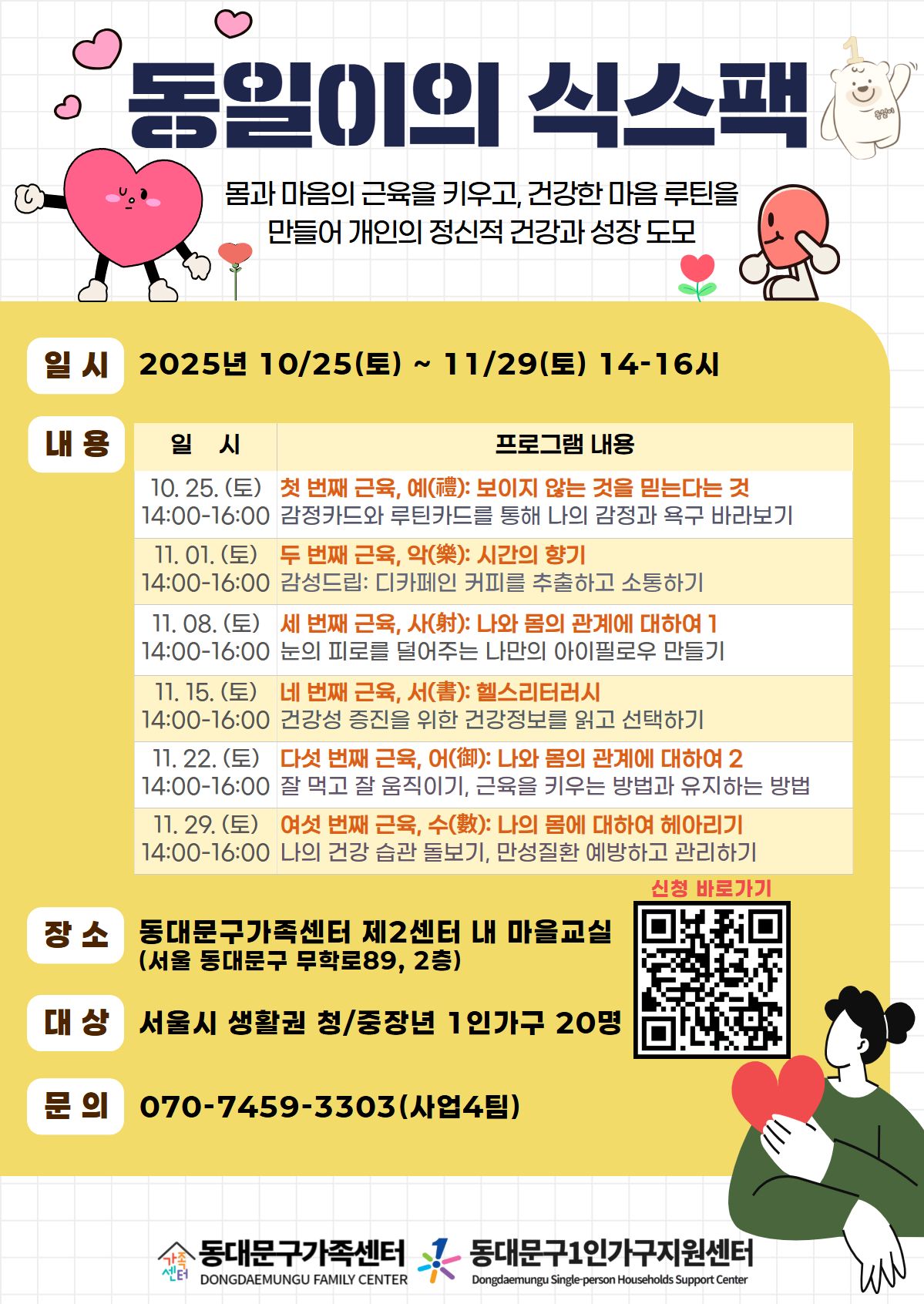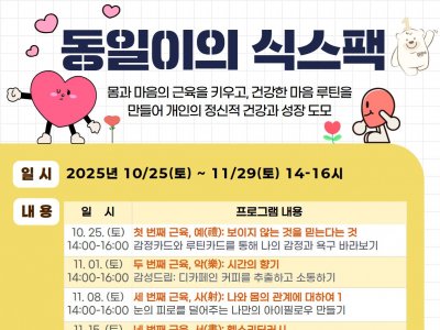 개인의 정신적 건강과 성장을 도모하기 위한 동일이의 식스팩 프로그램을 운영합니다!