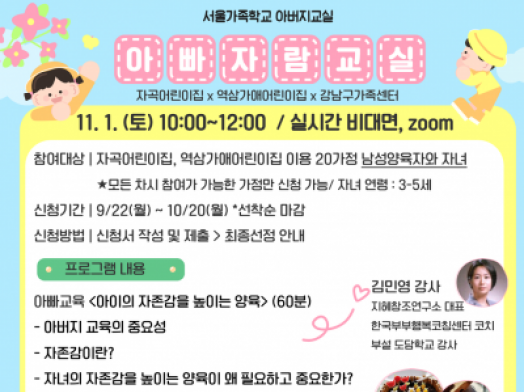 - 강남구[강남구]11월 1일(토) 대면 부모교육 -호시탐탐 내 아이 진로찾기-