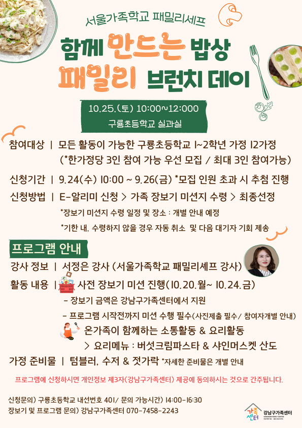 구룡초등학교에 다니는 자녀 가정으로만 모집되어 완료되었습니다!