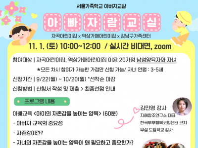 - 강남구[강남구]11월 1일(토) 대면 부모교육 -호시탐탐 내 아이 진로찾기-