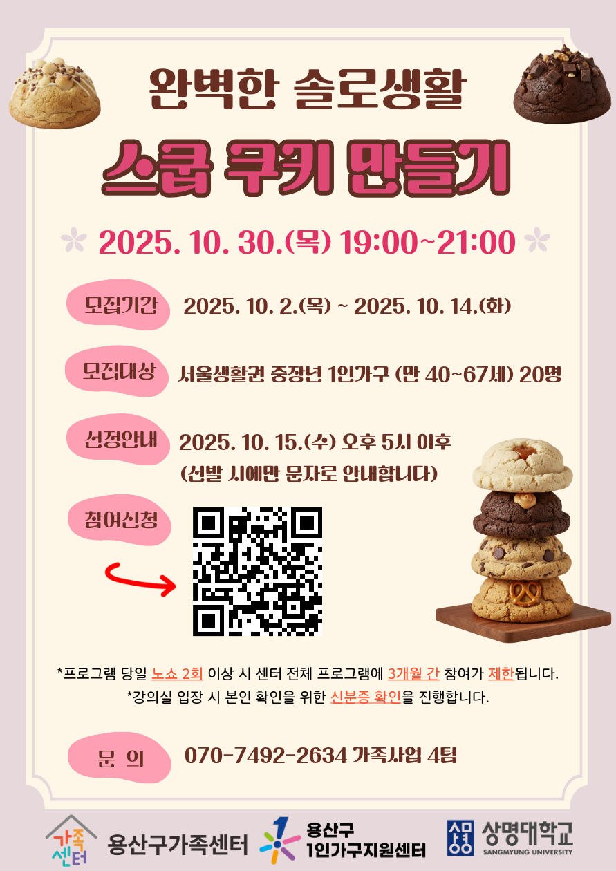 - 용산구[용산구] 완벽한 솔로생활(중장년)_10월 베이킹(스쿱 쿠키 만들기)