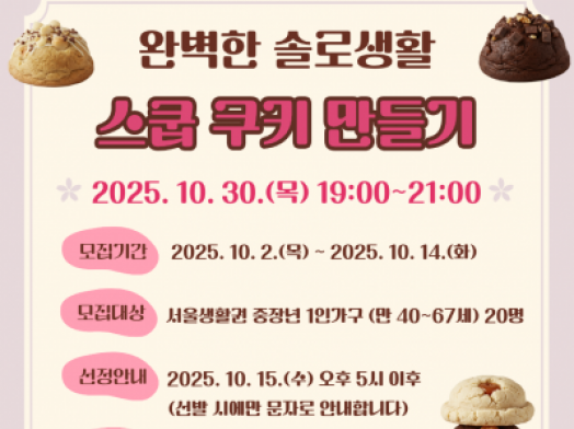 - 용산구[용산구] 완벽한 솔로생활(중장년)_10월 베이킹(스쿱 쿠키 만들기)