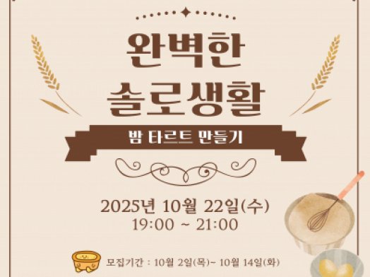 - 용산구[용산구] 완벽한 솔로생활(청년)_10월 밤 타르트 만들기