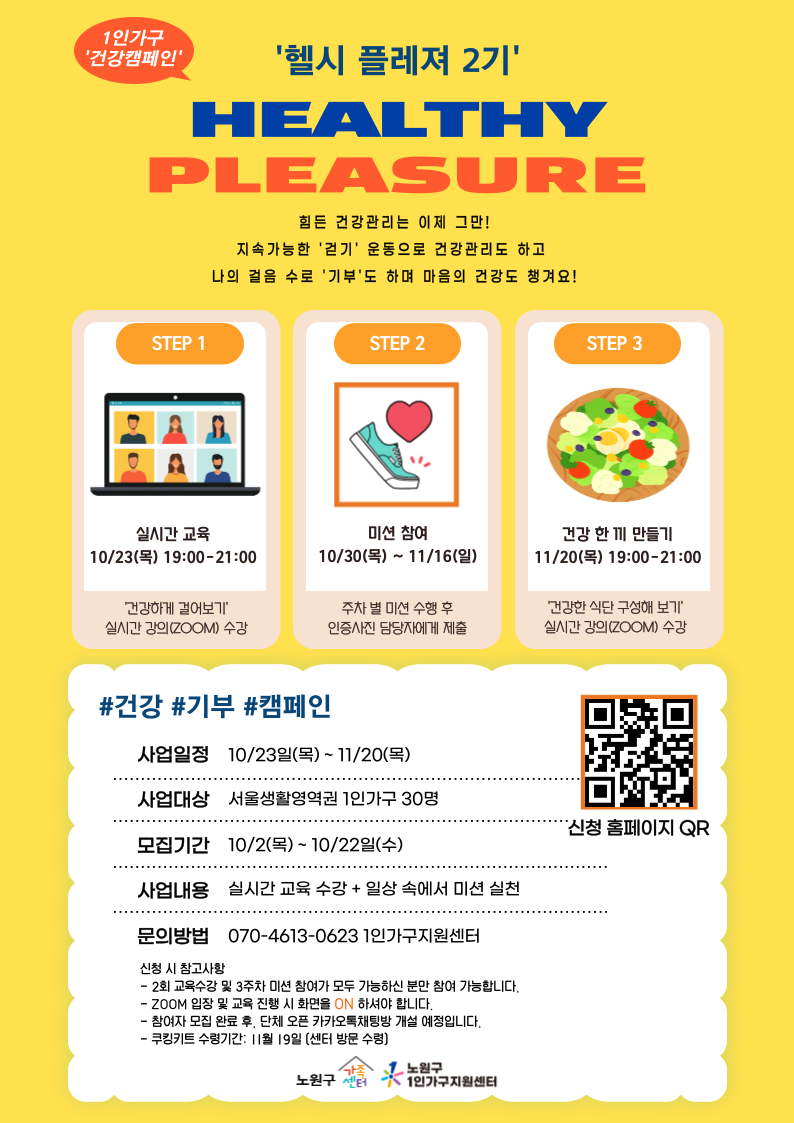 [노원구] 1인가구지원사업_건강캠페인 '헬시플레져 2기' 참여자 모집 중