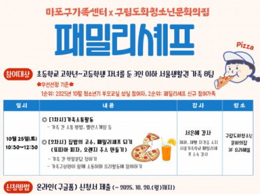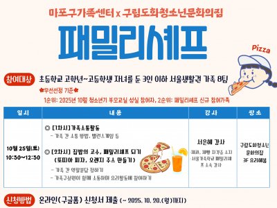 - 마포구[마포구]청소년 자녀와 함께하는 '패밀리셰프' 참여가족 모집