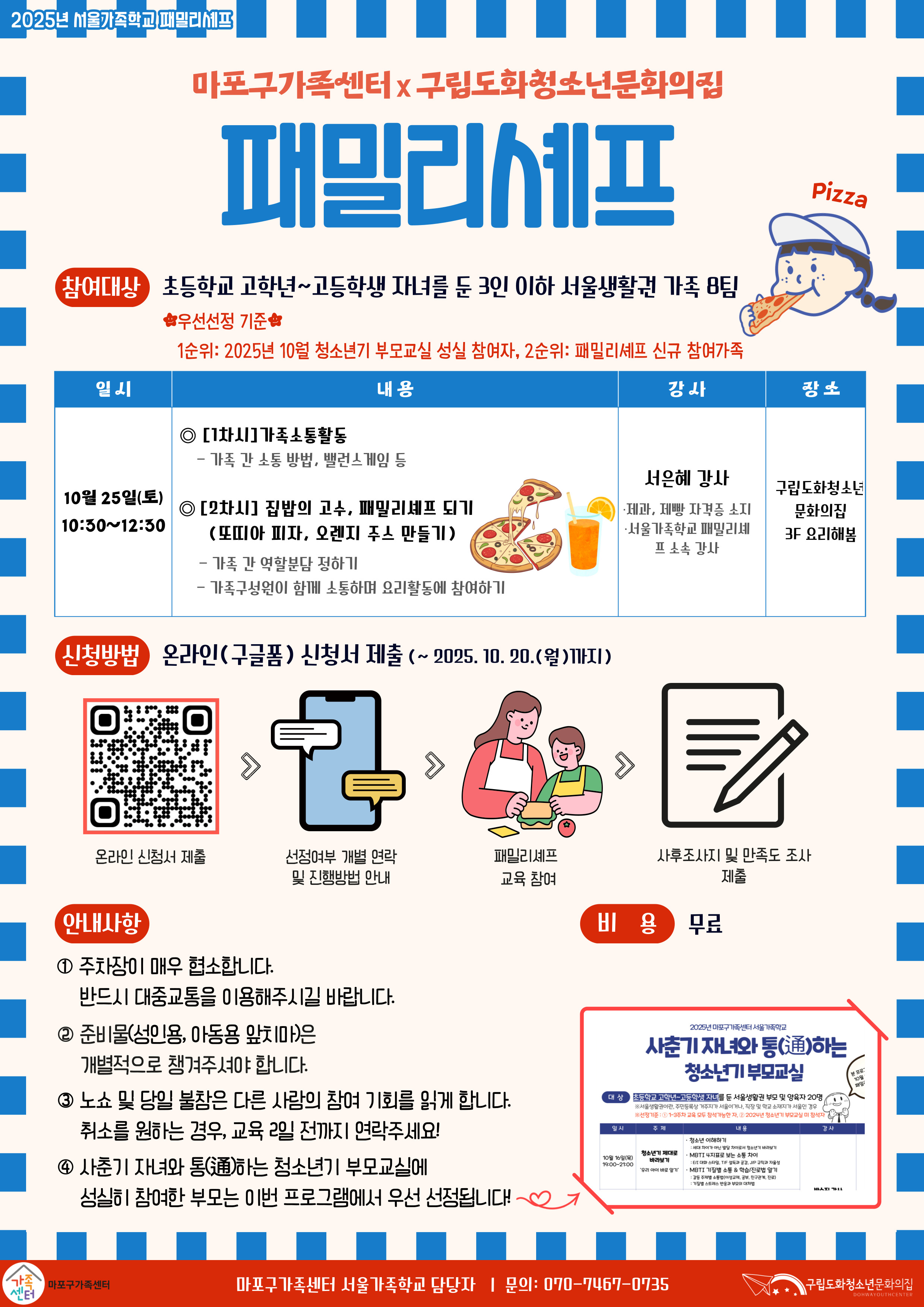 마포구가족센터 서울가족학교 담당자 ☏070-7467-0735 / https://open.kakao.com/o/sL0Brcig