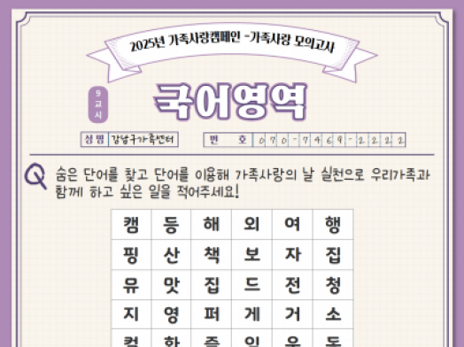 [강남구]2025년 가족사랑 캠페인<가족모의고사 국어영역>