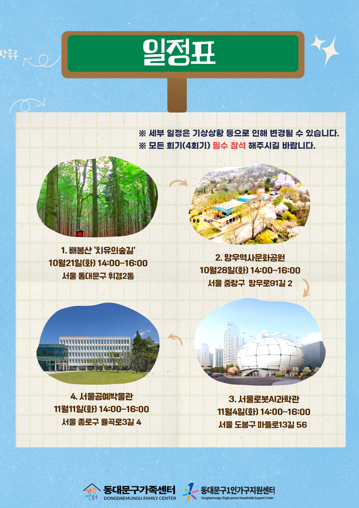 *기상상황 등으로 인해 세부 프로그램 일정은 변동될 수 있습니다!