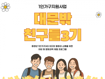 중장년(40-50대) 1인가구 대상으로 야외 및 문화과학 체험 프로그램 참여자를 모집합니다!