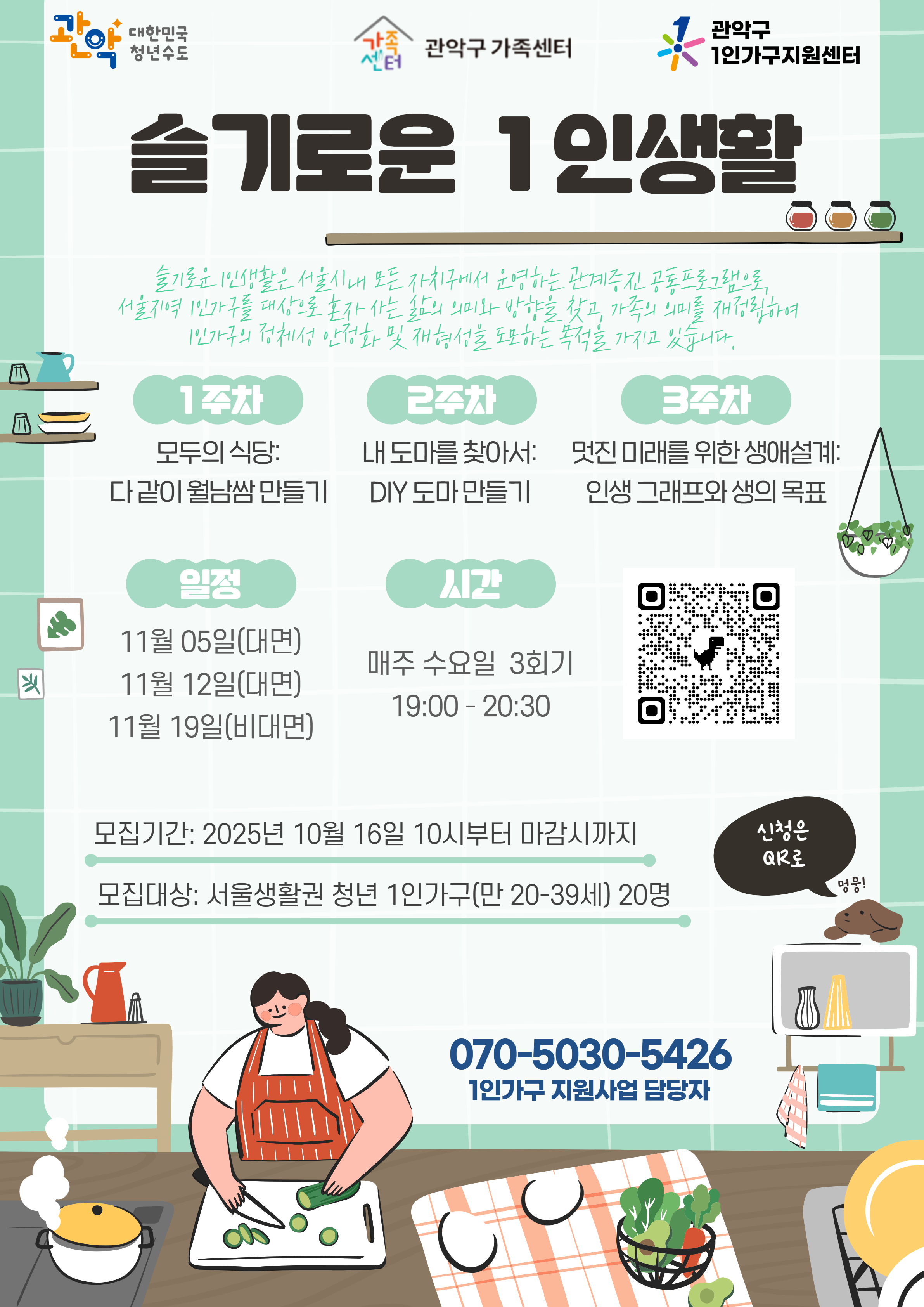 - 관악구[관악구] [1인가구] 청년 만남이 좋아 <슬기로운 1인생활> 모집중!