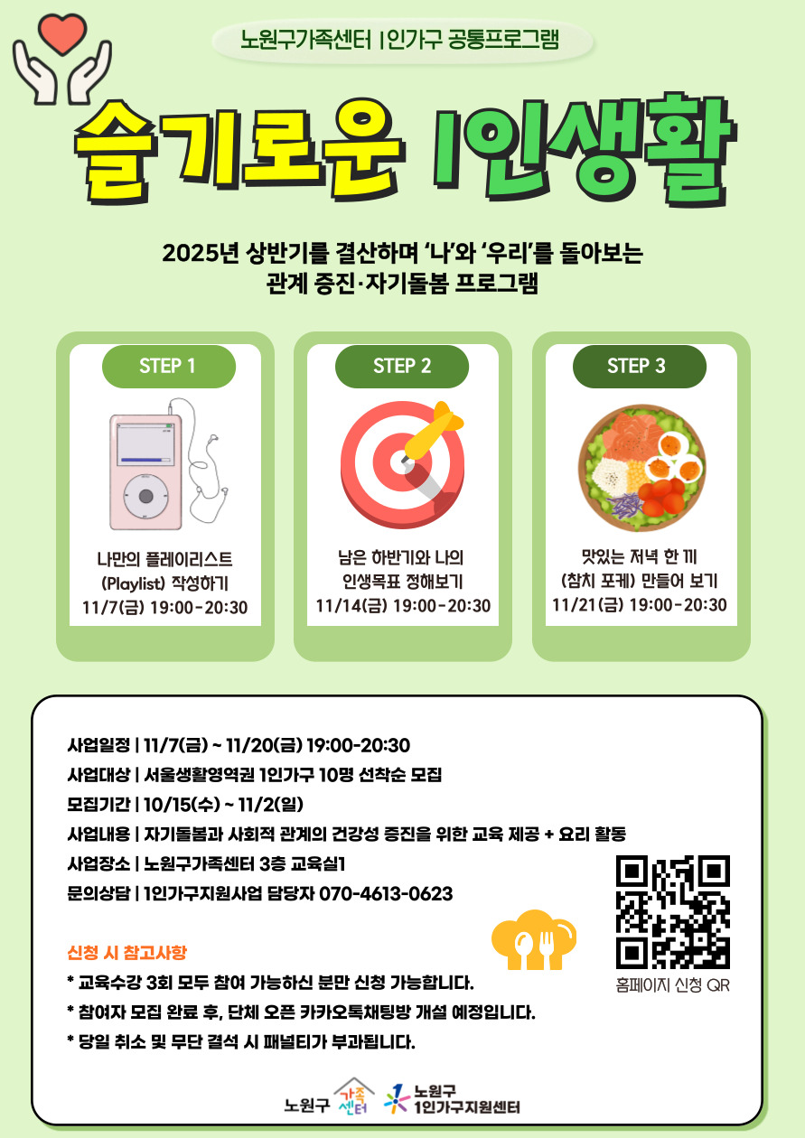 [노원구] 1인가구 공통프로그램(관계증진-자기돌봄)