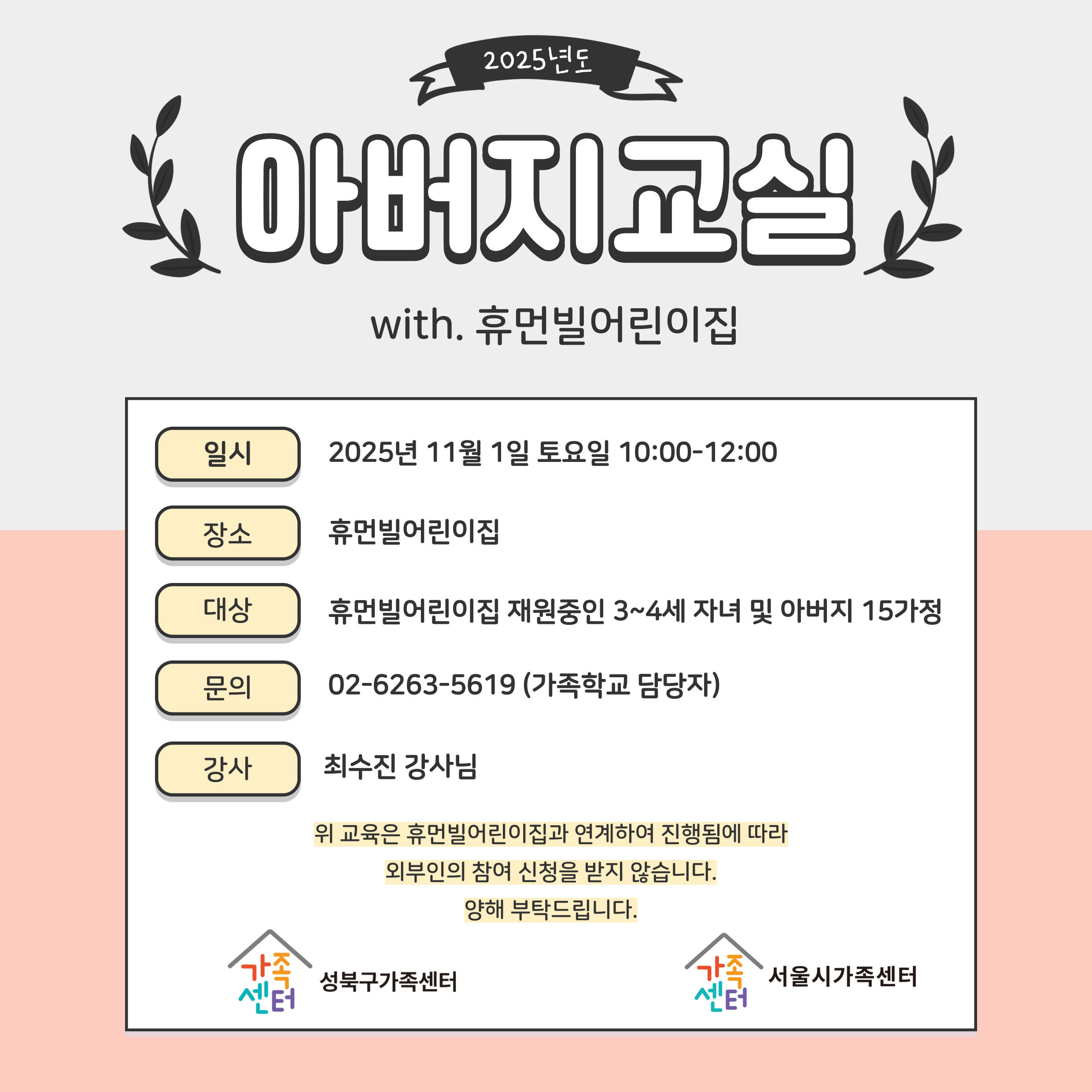 [성북구] 2025년 11월 아버지교실 (with 휴먼빌어린이집)