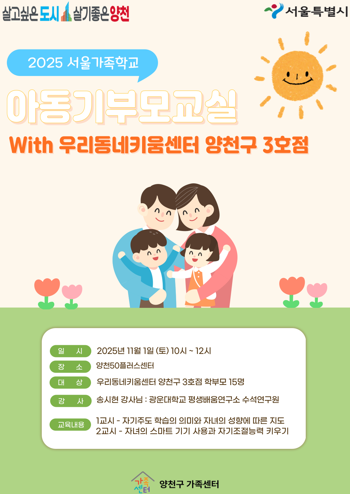 • 대 상: 우리동네키움센터 양천구 3호점 이용 자녀의 부모