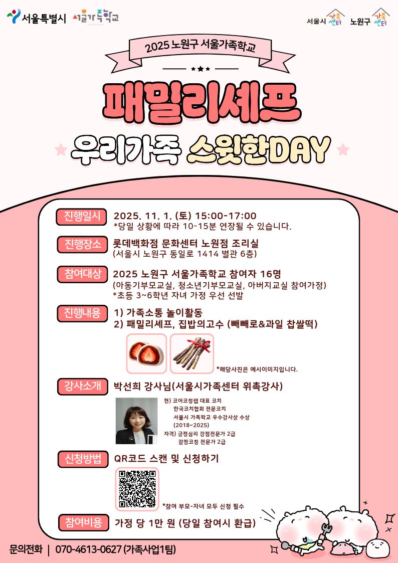 - 노원구 서울가족학교 참여 가정 롯데백화점 문화센터 노원점 조리실 (서울 노원구 동일로 1414 별관 6층)