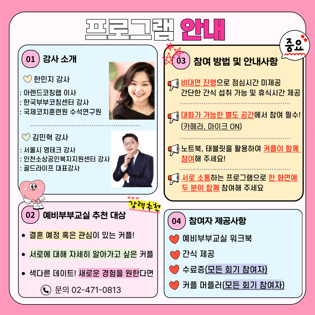 예비부부들의 행복한 결혼 준비를 위해 2025 서울가족학교 예비부부교실이 찾아왔습니다.🎉