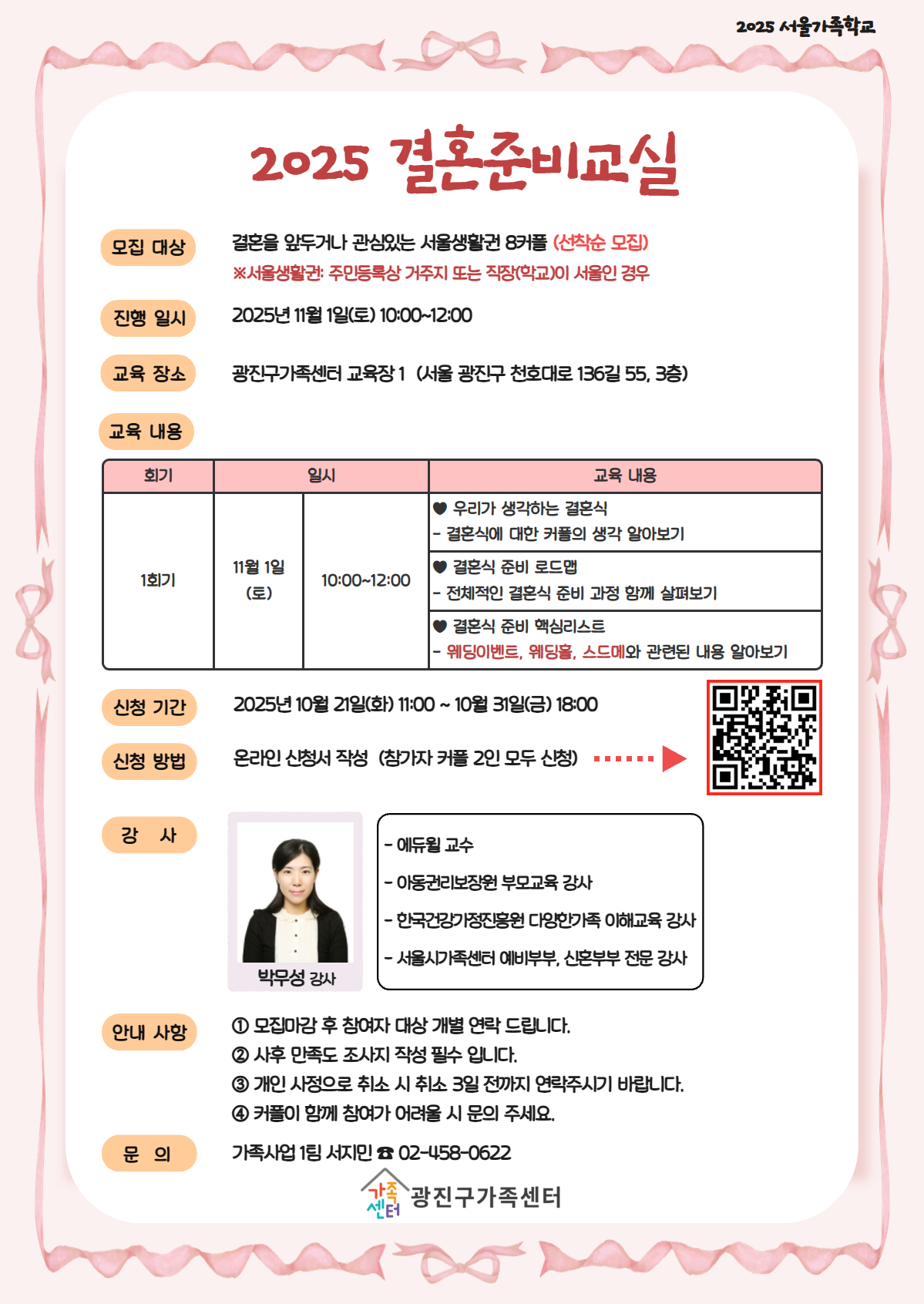 광진구가족센터에서 2025 결혼준비교실 프로그램을 진행합니다.