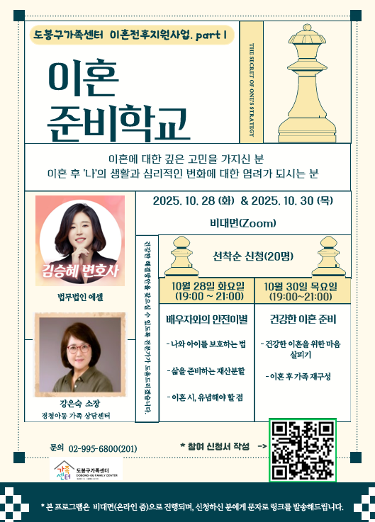 이혼위기에 있는 부모를 위한 ‘이혼준비학교’ 참여자를 모집합니다~