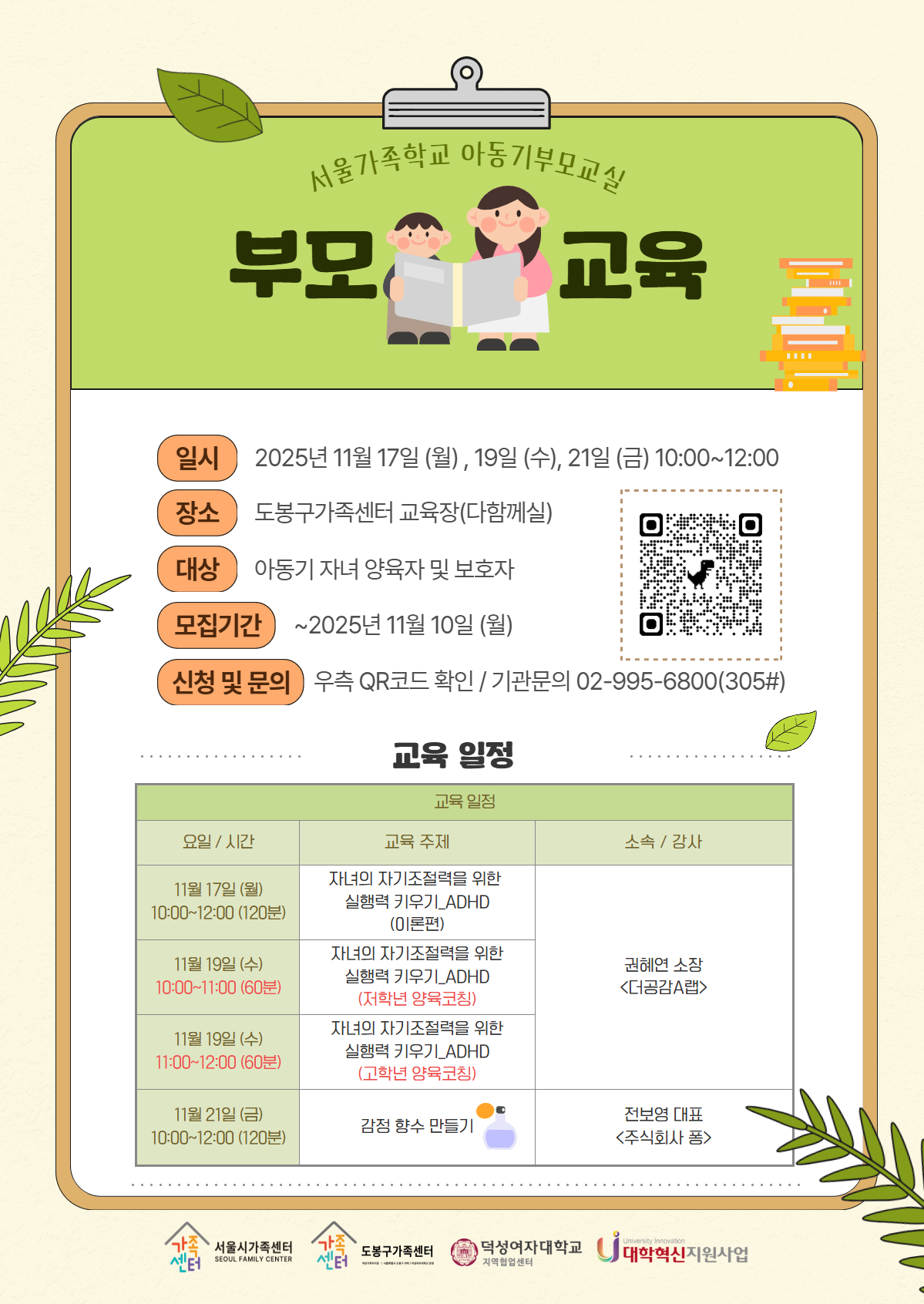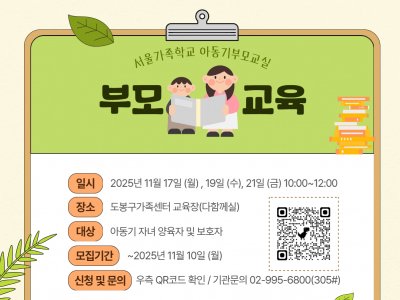 - 도봉구[도봉구] 2025 11월 아동기부모교실 신청접수중