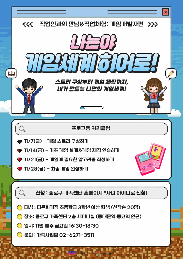 - 종로구[종로구/다문화가족] 직업인과의 만남&직업체험: 게임개발자편(게임개발체험)