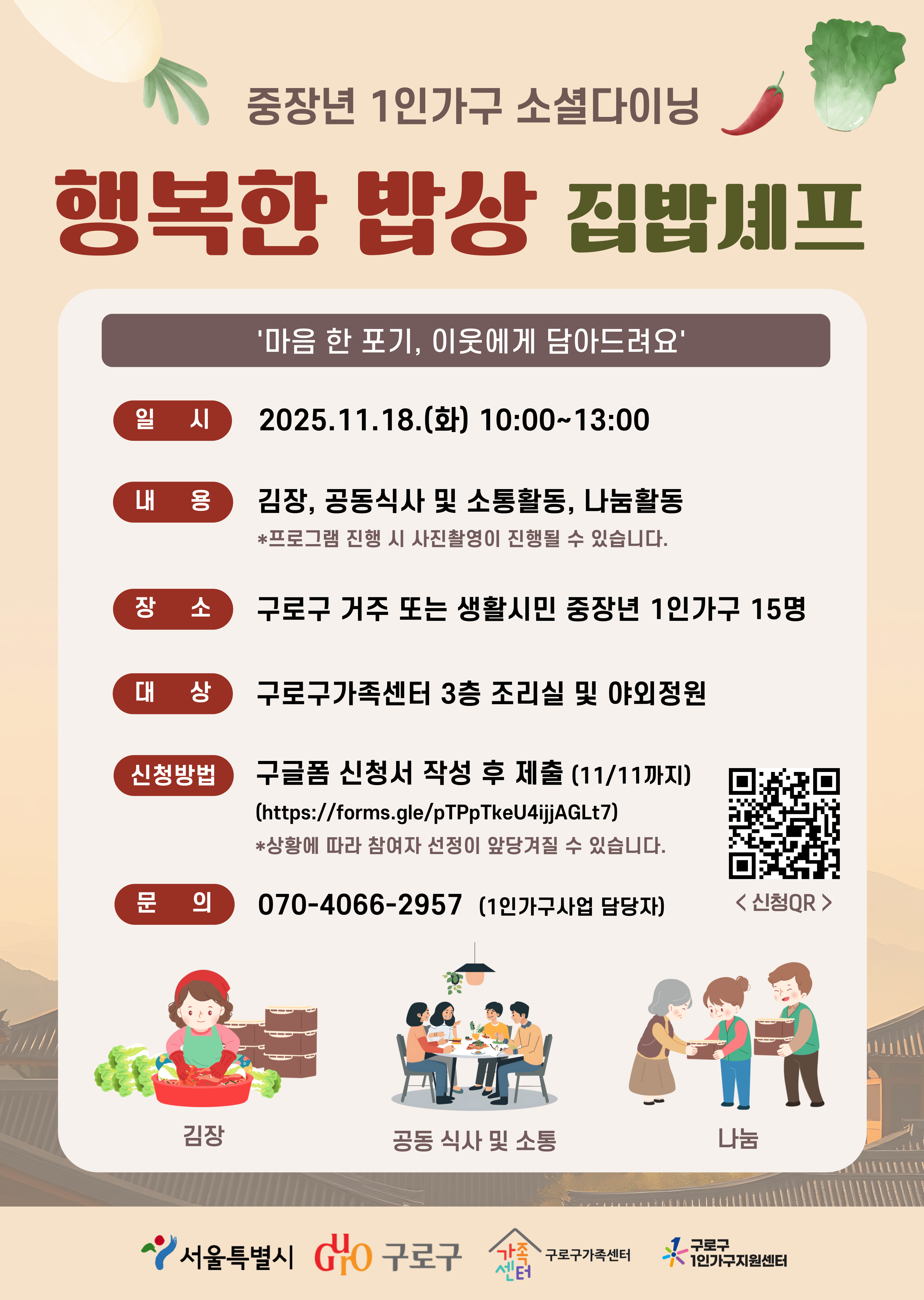 [구로구] 2025 행복한 밥상 '집밥셰프' 김장 특별프로그램 참가자 모집