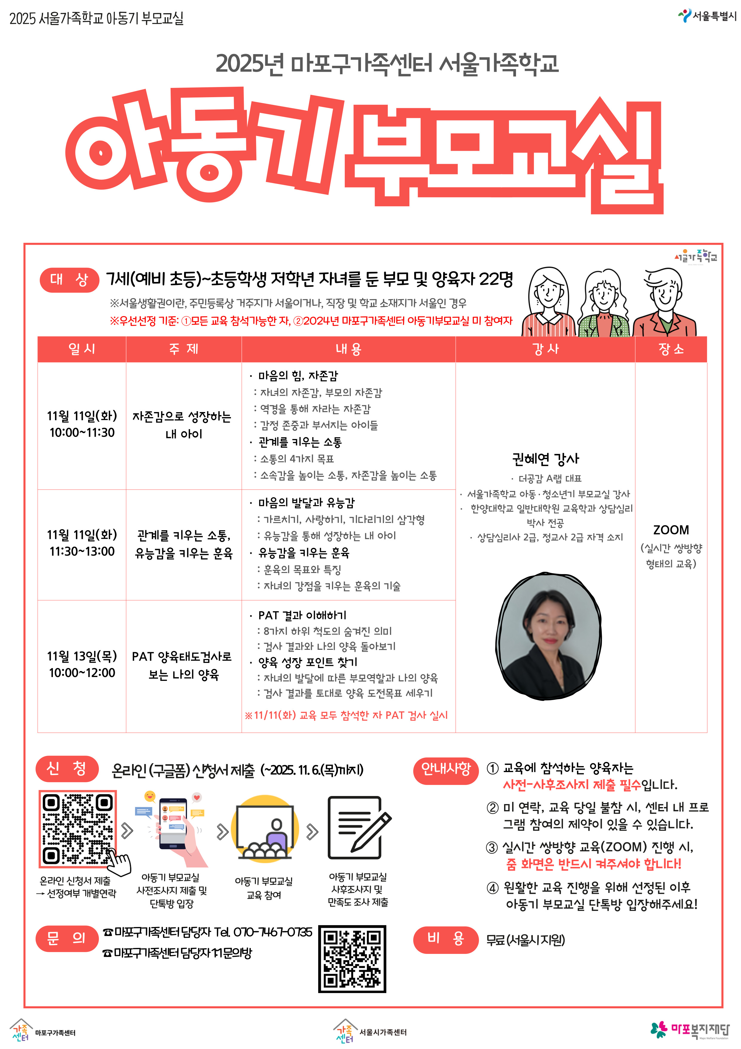 [마포구]2025년 아동기 부모교실 3차 참여자 모집